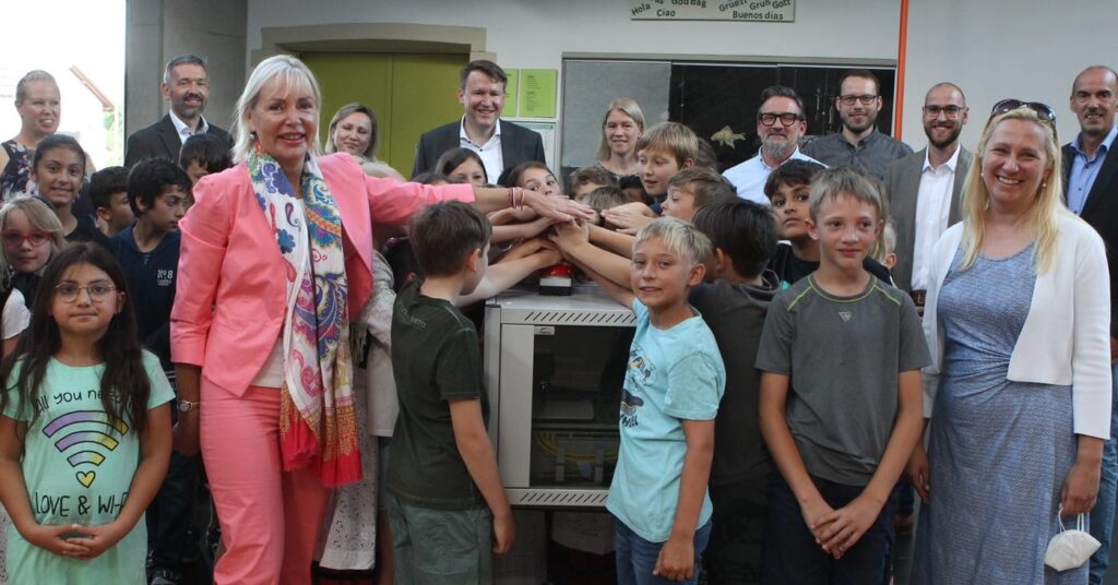 Insgesamt 28 weitere Schulen im Kreis Bergstraße wurden erfolgreich an das Glasfasernetz angeschlossen. Wenn das kein Grund zum Feiern ist?!? Und darum ist sogar die Ministerin Prof. Kristina Sinemus Hessischen Ministeriums für Digitale Strategie und Entwicklung gekommen. Leider konnte ich aufgrund meiner Corona-Infektion nicht teilnehmen, aber meine Vertreterin, Erste Kreisbeigeordnete Diana Stolz, hat meine Glückwünsche überbracht. Diana Stolz, vielen Dank dafür! Das Projektvolumen war insgesamt 919.000 Euro schwer und konnte dank der Bundes- und Landesförderung gestemmt werden. Ich bedanke mich bei allen Akteuren für die erfolgreiche und schnelle Umsetzung. Als nächster Schritt werden die Glasfaseranschlüsse aktiviert und damit können die Schülerinnen und Schüler die volle Bandbreite nutzen. Ein weiterer wichtiger Meilenstein für die Digitalisierung der Schulen im Kreis Bergstraße!
