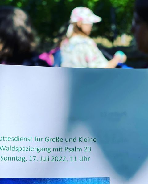 Heute Morgen ging’s mit der Familie nach „draußen“. Gottesdienst mit Waldspaziergang und Picknick zum Psalm 23. „Der Herr ist mein Hirte“.