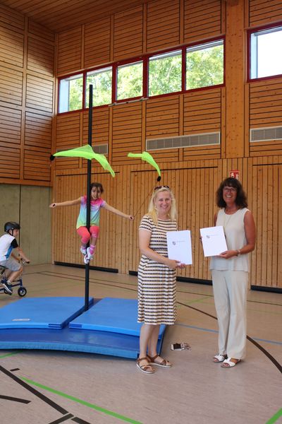Jonglieren, Balancieren, Einrad fahren… Ab heute tauchen rund 20 Kinder in die Zirkuswelt ein. Sie nehmen an der Ulfenbachtalschule in Wahlen an einem 1-wöchigen Zirkusprojekt teil. Projektförderung über das Bundesprogramm „Aufholen nach Corona“, nach Beschluss durch den Kreisausschuss des Kreises Bergstraße. Bereits in den Osterferien hatte ein Theaterprojekt in Grasellenbach stattgefunden, das auch so gefördert worden war. „Das Aktionsprogramm ‚Aufholen nach Corona‘ ist wichtig. Kinder und Jugendliche sollen damit im Bereich der frühkindlichen Bildung, in der Motorik bzw. im Sozialleben gezielt unterstützt werden. Insbesondere die negativen Auswirkungen der Pandemie müssen minimiert werden“, betonte die Erste Kreisbeigeordnete Diana Stolz (Foto). Heute mit vor Ort: Renate Dahlke von der Gemeindeverwaltung Grasellenbach (Foto, rechts) Danke an alle Beteiligten!