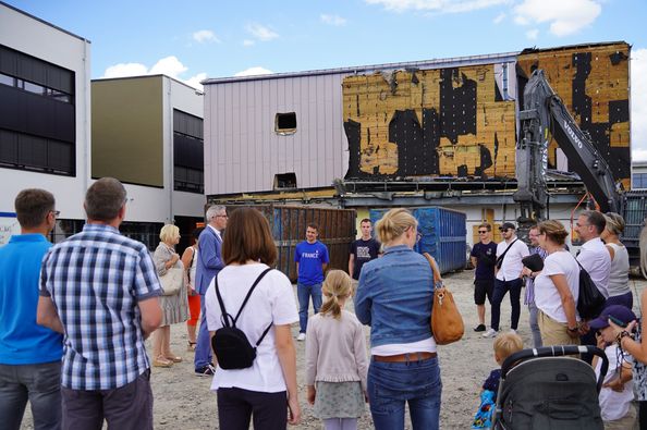 Landrat beim Abriss des alten Schulgebäudes der Bensheimer Karl-Kübel-Schule