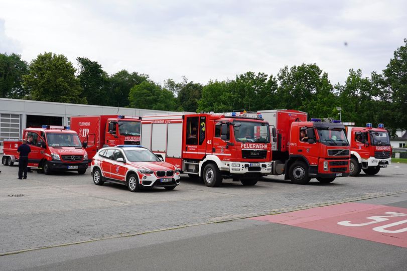 (Das Bild ist vom Ausrücken der Feuerwehren zur Hochwasserhilfe in Stolberg).