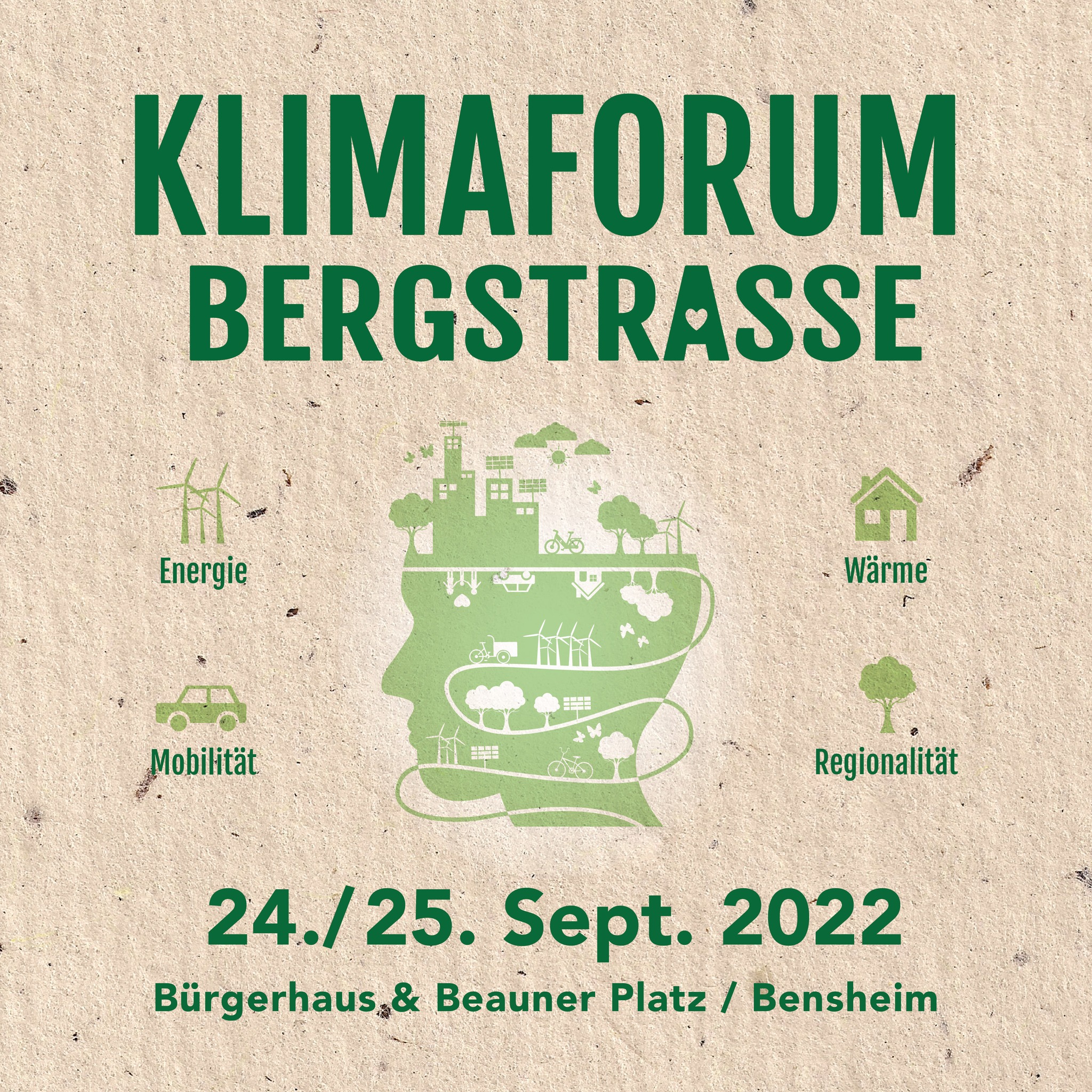 Klimaforum Bergstraße – eine Nachhaltigkeitsmesse, die es in sich hat. Wir laden Sie vom 24.-25.09.2022 herzlich ins Bensheimer Bürgerhaus und auf den Beauner Platz ein.