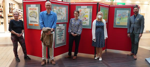 Auf dem Foto: Petra Thaidigsmann und Henning Knapheide von der EUTB Bergstraße, Dr. Simone C. Nicklas vom Universitätsklinikum Marburg, Vize-Landrätin Diana Stolz und RNZ-Centermanager Dani Marquardt
