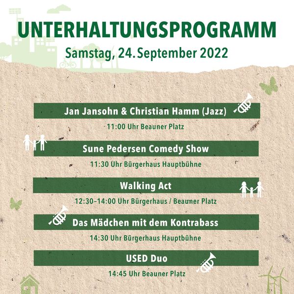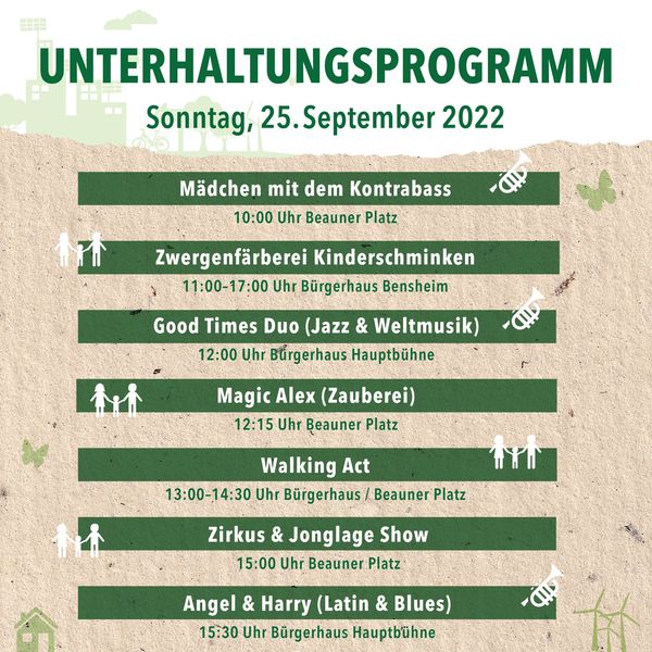 Abwechslungsreiches Rahmenprogramm mit viel Live-Musik und besonderen Highlights für die ganze Familie: Von Artistik, Zauberei bis hin zum Kinderschminken und verschiedenen Musikerinnen und Musikern ist hier für jeden Geschmack etwas geboten.