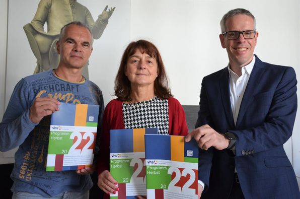 Schmökern lohnt sich! Im neuen Programm der Kreisvolkshochschule für Herbst und Winter 2022 gibt es jede Menge spannende Kurse. Gemeinsam mit der Leiterin Iris Hoch und Matthias Petry (zuständig für Gesundheit und Fitness) habe ich es heute vorgestellt. Allein im Bereich Fitness und Gesundheit gibt es dieses Semester 180 Kurse. Toll, dass die inzwischen wieder ohne Einschränkungen stattfinden können – genauso wie geführte Touren zum Beispiel ins jüdische Museum nach Frankfurt oder ins weihnachtliche Nürnberg. Neu sind auch einige Kurse zum Thema Medienkompetenz – ich persönlich kann den Kurs „TikTok-Videos drehen“ der jungen vhs empfehlen. In diesem Herbst steht zudem ein runder Geburtstag an – am 21.10. feiert die KVHS ihren 50. Geburtstag! Vielen Dank an alle Mitarbeiterinnen und Mitarbeiter der KVHS für immer neue Ideen und Angebote – lebenslanges Lernen hält unseren Kreis fit und kreativ.