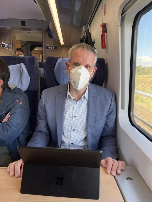 Beste Laune: Zug pünktlich, mein Wagen ist da, W-LAN funktioniert.