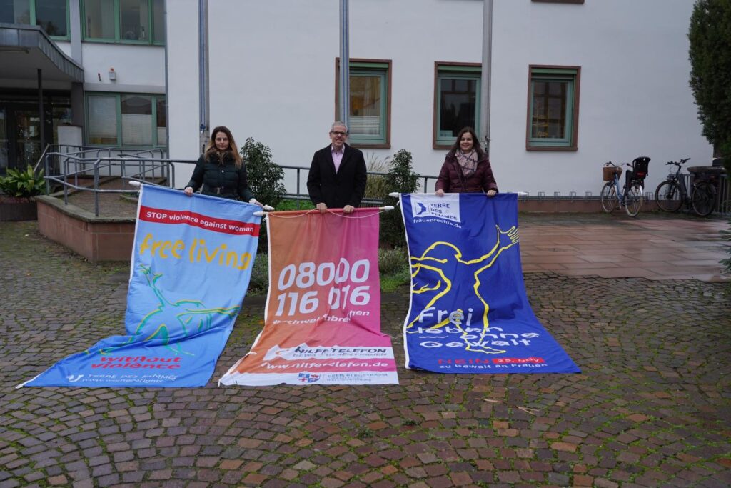 Mit wehenden Fahnen ein Zeichen setzen: Heute ist internationale Tag gegen Gewalt an Frauen. Auch wir als Kreisverwaltung wollen auf dieses Thema hinweisen. Daher wehen aktuell Aktionsfahnen vor dem Heppenheimer Landratsamt. Als sichtbares Zeichen gegen Gewalt an Frauen und Mädchen. Hilfreich: Die mittlere Fahne zeigt die entsprechende Notfall-Telefonnummer. Das Hilfetelefon ist über die Rufnummer 08000 116 016 erreichbar. Täglich, 24 Stunden lang. Barrierefrei und mehrsprachig.