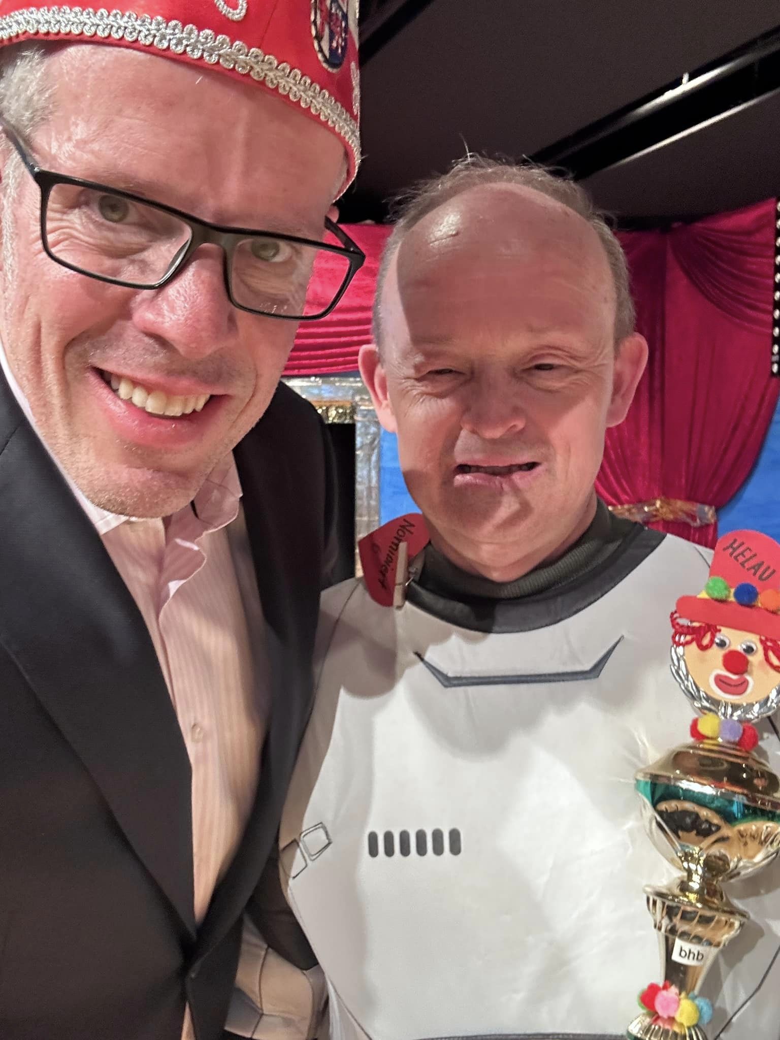 Auf dem Bild bin ich mit Johannes Wemmer. Er hat heute mit seinem Star-Wars-Kostüm die Kostümehrung gewonnen. Gerne habe ich ihm die Auszeichnung überreicht – möge die Macht mit dir sein!