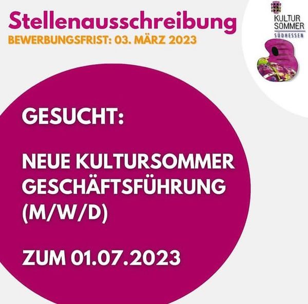Alle Informationen zur Stellenausschreibung entnehmen Sie bitte folgendem Dokument: https://www.kultursommer-suedhessen.de/…/KUSS…