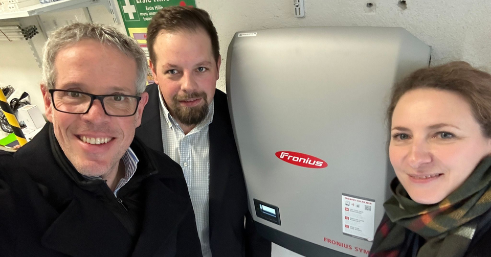 Mit Frau Myra Myhalnyuk und Herrn Marc Collin. Letzterer ist Geschäftsführer unserer Servicegesellschaft GmbH und Frau Myhalnyuk ist „Fachfrau“ für Photovoltaik.