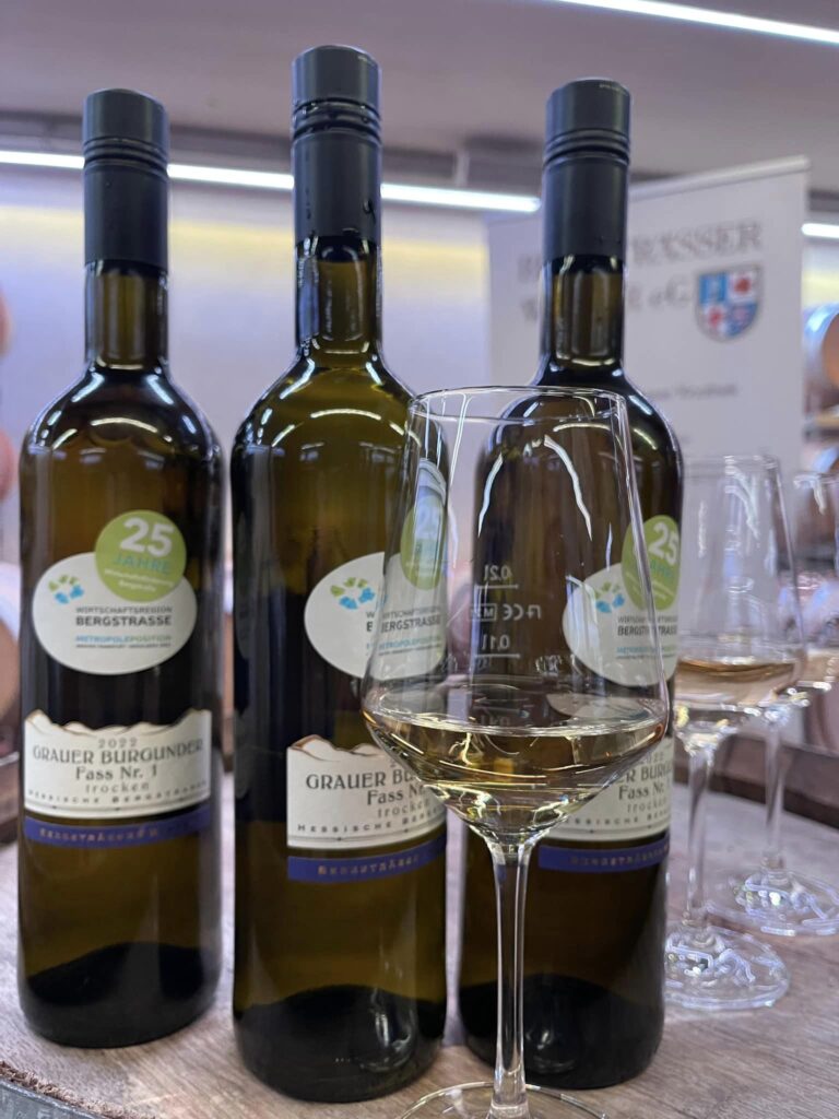 Die Wirtschaftsförderung Bergstraße GmBH wird in diesem Jahr stolze 25 Jahre alt. So lange setzt sie sich schon für die Wirtschaft und die damit verbundenen Arbeitsplätze in unserem Kreis ein. Aus diesem Anlass haben wir heute im Viniversum, passend zu unserem Kreis als Genussregion, einen Jubiläumswein vorgestellt. Es ist ein Grauer Burgunder, Jahrgang 2022, in limitierter Auflage. Natürlich stammt er aus den Weinbergen unserer Bergstraße.