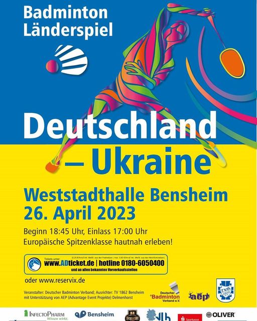 Das wird ein tolles Sportevent für unseren Kreis: Am 26. April findet in der Weststadthalle in Bensheim ein ganz besonderes Badmintonspiel statt. Der TV Bensheim ist erneut Mitausrichter eines Länderspiels. Dieses Mal treten die deutsche und ukrainische Mannschaft gegeneinander an. Beide zählen aktuell zu den besten Nationalmannschaften in Europa.