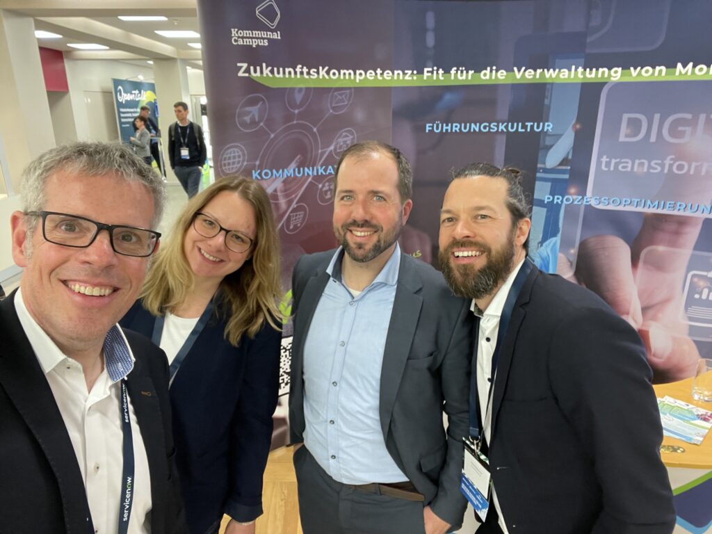Mir persönlich war es eine Freude, dass ich beim 3-Länder-Forum (einer Veranstaltung i Rahmen der Messe) auf dem Fachpodium sitzen durfte. Zusammen mit den beiden Staatssekretären Patrick Burkhardt (unser hessischer CIO), Fedor Ruhose (der CIO des Landes Rheinland-Pfalz) und Stefan Krebs, dem CIO des Landes Baden-Württemberg. Frau Dr. Christine Brockmann von der Beratungsgesellschaft pd-deutschland und ich ergänzten das Podium.
