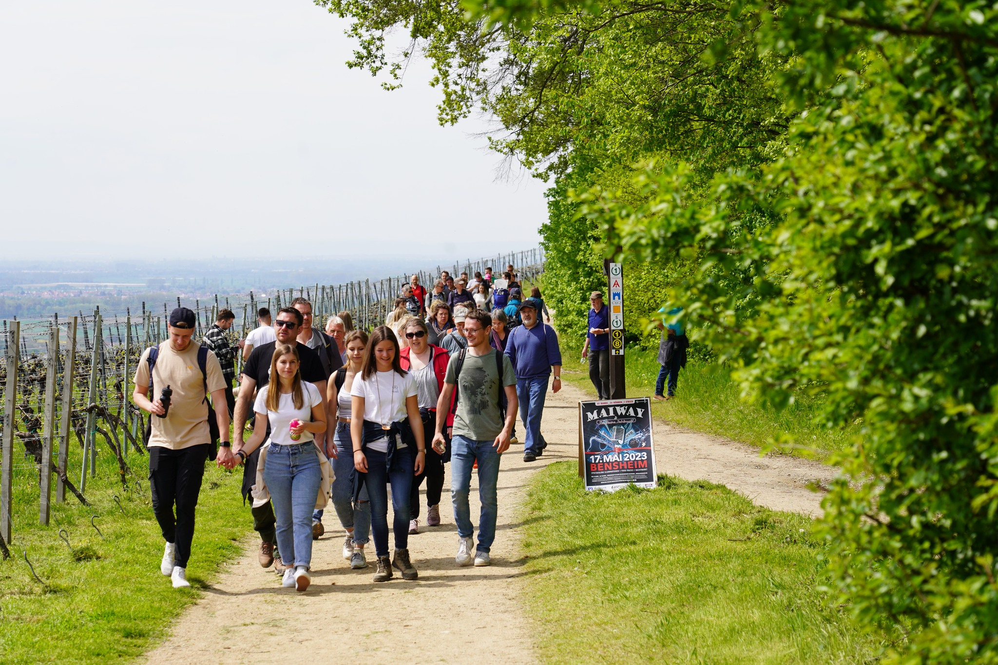 Die Weinlagenwanderung 2023 ist super! Schönes Wetter, viele fröhliche Menschen und leckerer Wein.