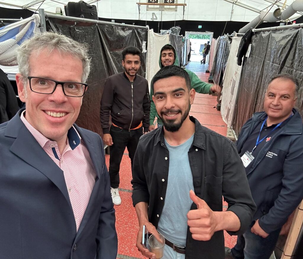 Ein „Selfie“ mit einigen der geflüchteten Personen, die wir in der Zeltstadt in Bensheim untergebracht haben.