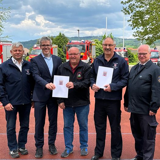 Damit haben Gerhard Knapp und Klaus Peter Engert wohl nicht gerechnet. Ich habe die beiden langjährigen und engagierten Mitglieder der Freiwilligen Feuerwehr Krumbach heute in Fürth bei einer Leistungsübung der Kreisfeuerwehren überrascht! Für ihren ehrenamtlichen Einsatz für die Menschen in unserem Kreis habe ich beiden jeweils einen Landesehrenbrief überreicht.