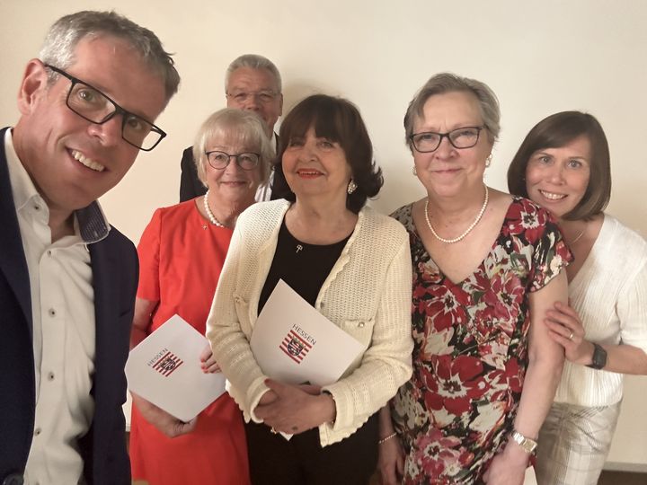 Drei Frauen, die sich schon seit der Gründung bei der Lampertheimer Tafel engagieren, habe ich heute mit dem Landesehrenbrief ausgezeichnet: Ilona Brunnengräber, Brigitte Harvey und Britta Mathis. Sie alle haben diese so wichtige soziale Institution in Lampertheim mitaufgebaut. Mit nimmermüdem Einsatz betreuen sie die Kundinnen und Kunden und die Helferinnen und Helfer. Sie leben vor, was Solidarität, Fürsorge und soziale Verantwortung wirklich bedeuten. Dafür meinen tief empfundenen Respekt und Dank.