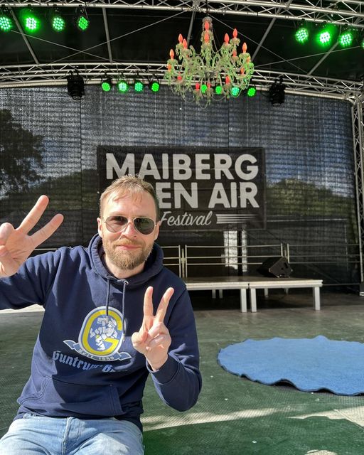 Harry Hegenbarth (der Veranstalter des Maiberg Open Air) ist schon heute im Einsatz, denn seit 17:00 Uhr hat das Festivalprogramm begonnen. Heute Abend leuchtet zwar nicht mehr die Sonne sondern viele Lichter und Lampen auf dem Maiberg. Das nun jeden Tag mit einem bunten Programm, bis zur Feuershow am Sonntag Abend.