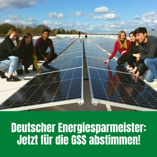 Mit ihrer PV-Anlage auf dem Dach der Sporthalle, die auch die Nachbarschaft mit erneuerbarer Energie versorgt, hat die Jury überzeugt. Damit hat sich die Geschwister Scholl Schule bereits gegen mehr als 400 Mitbewerbern durchgesetzt und tritt in der letzten Runde nun gegen die 15 anderen Landesmeister im bundesweiten Wettbewerb an. Bis zum 15.06. läuft noch das Voting für den bundesweiten Energiesparmeister 2023 und pro Tag kann eine Stimme pro Person abgegeben werden.