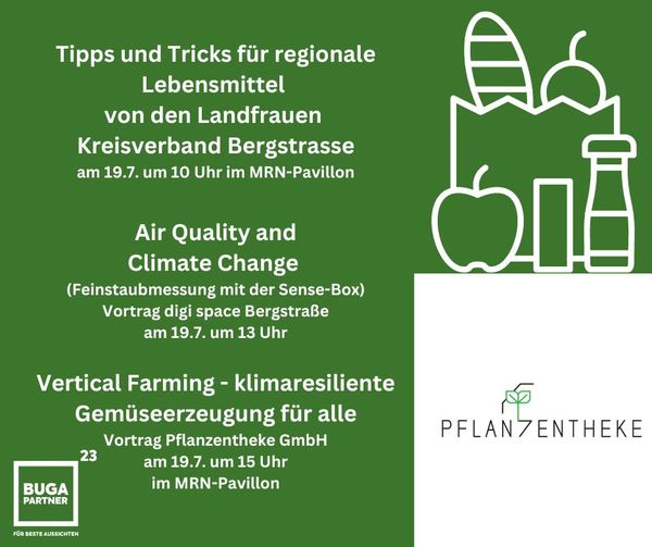Von 15 bis 16 Uhr zeigt abschließend die Pflanzentheke aus Lorsch auf, wie man mit „Vertical Farming“ klimaresiliente Gemüseerzeugung für alle realisieren kann.