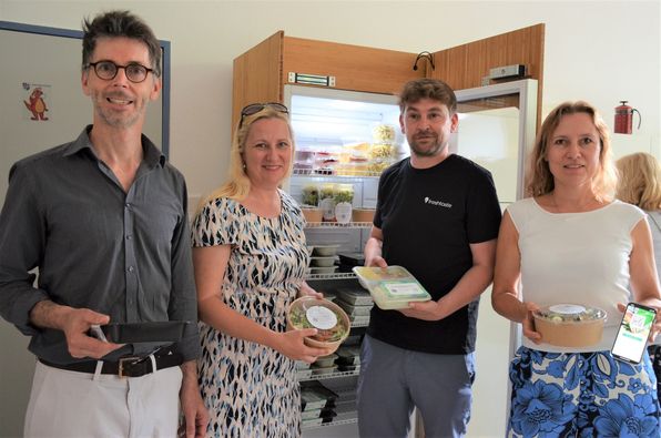 Gesundes und nachhaltiges Essen in der Bergsträßer Kreisverwaltung: In Kooperation mit der Firma Freshtaste stehen nun an drei Standorten, darunter das Gesundheitsamt, spezielle Kühlschränke mit frischen Gerichten von regionalen Herstellern. Darunter sind vollwertige Mahlzeiten, aber auch Snacks für zwischendurch. Freshtaste ist ein junges Unternehmen aus der Metropolregion Rhein-Neckar. Die Kühlschränke können per App geöffnet werden, darüber wird auch bezahlt. Auch die Verpackungen sind möglichst nachhaltig, sie sind recycelbar und teilweise sogar kompostierbar. Und: Gerichte, die nicht verbraucht wurden, aber noch haltbar sind, werden einmal in der Woche abgeholt und an bedürftige Familien verteilt.