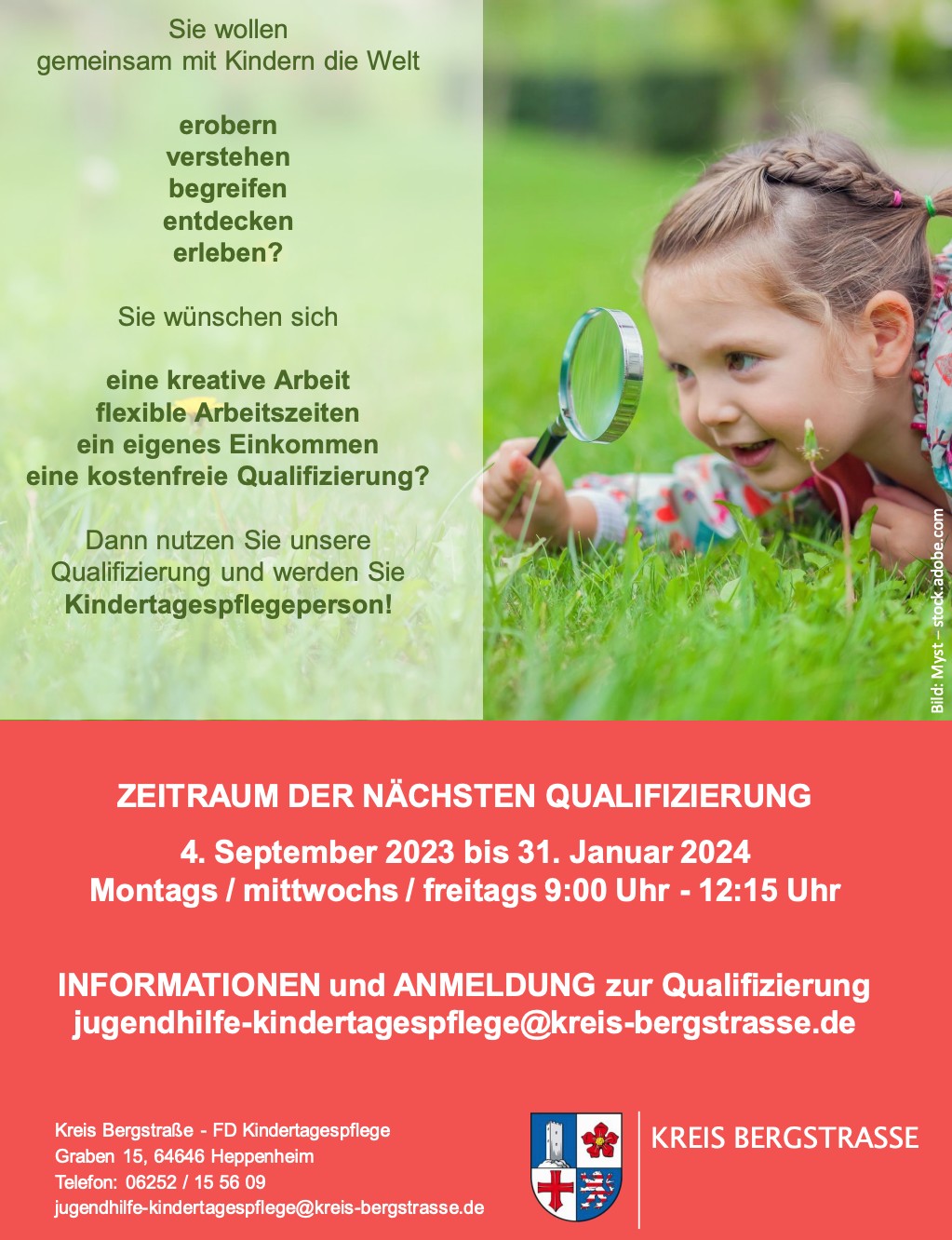 Weitere Informationen finden Sie unter: https://www.kreis-bergstrasse.de/…/kindertagespflege/