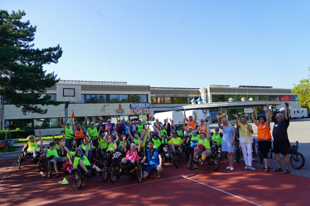 Wieder gemeinsam in Bewegung kommen: Das ist das Motto der Multiple-Sklerose-Selbsthilfegruppe radfahrlust! Nach 3-jähriger Corona-Pause konnte die Gruppe nun endlich wieder ihre jährliche Spezialrad-Tour machen. Für 7 Tage sind Betroffene und nicht-Betroffene der Erkrankung aus ganz Deutschland nach Viernheim in das Gemeinschaftsquartier in die AvH-Schule gekommen, um jeden Tag gemeinsam rund 20-40 Km zurückzulegen. Dadurch sollen die Teilnehmenden nicht nur ihre Selbstständigkeit zurückerlangen, sondern auch Zeichen für Inklusion und Integration gesetzt werden. „Für uns ist es selbstverständlich, dass wir das Quartier für Sie zur Verfügung stellen. Das ist eine ganz großartige Aktion und Sie sind alle gerne wieder willkommen“, lobte die Erste Kreisbeigeordnete und Gesundheitsdezernentin Diana Stolz, in Vertretung für Landrat und Schirmherrn Christian Engelhardt, vor Ort.