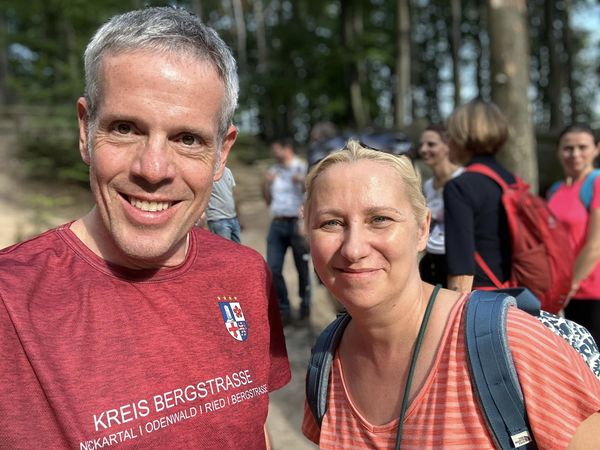 Mit der Kollegin Diana Stolz und Führungskräften der Kreisverwaltung bei einer Wanderung im Felsenmeer. Dieses gemeinsame Event findet nun zum dritten Mal statt und hat mittlerweile Tradition. Sie dient dem Austausch und Miteinander in unserer von vielfältigen Aufgaben und Standorten geprägten Verwaltung.