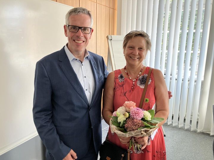 Seit 30 Jahren ist Andrea Dähn Sekretärin an der Schillerschule in Bensheim. In diesen Jahren hat sie viele Schülerinnen und Schüler, Lehrerinnen und Lehrer und Schulleitungen kommen und gehen sehen. Für sie alle war und ist Frau Dähn oft die erste Ansprechpartnerin, die sie mit Rat, Tat, Kompetenz und Engagement unterstützt. Bei unseren Schulsekretärinnen laufen viele Fäden zusammen, ihre Tätigkeit erfordert daher viele Kompetenzen. Umso schöner, wenn sie uns so lange treu bleiben. Mit Frau Dähn habe ich heute ihr 40-jähriges Jubiläum im Öffentlichen Dienst gefeiert. Vielen Dank, dass Sie Ihre Persönlichkeit schon so lange an einer unserer Schulen einbringen!