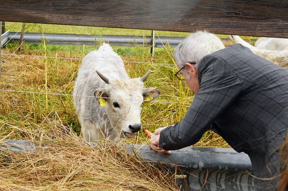 Heute war ich auf einem schönen Termin: Der Geo-Naturpark Bergstraße-Odenwald, dessen Vorsitzender ich als Landrat bin, übernimmt die Patenschaft für ein kleines Ungarisches Steppenrind: Liesel. Liesel ist genau wie ihre Mutter Donna Teil des Auerrindprojektes des Förderkreis Große Pflanzenfresser im Kreis Bergstraße. Im Namen des Geo-Naturparkes habe ich den ehrenamtlich Engagierten des Vereins einen Spendenscheck über 500 Euro überreicht. Das Ziel des Vereins gemeinsam mit dem Freilichtlabor Lauresham ist es übrigens, den Auerochsen zurück zu züchten oder ihm möglichst nahe zu kommen. Denn Auerrinder sind besonders geeignet, naturnahe Lebensräume wie Auenwälder zu beweiden. Sie tragen durch ihr Fressverhalten zum Artenreichtum bei. Ein wirklich spannendes Projekt!