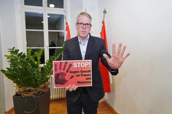 Stop! Morgen ist der Internationale Tag gegen Gewalt an Frauen und Mädchen. Um ein klares Zeichen zu setzen, habe ich schon heute mit unseren Frauen- und Gleichstellungsbeauftragten Alexandra Schmitt und Nicole Schmitt sowie der Heppenheimer Gleichstellungsbeauftragten Tamara Bernhardt an unseren beiden Amtsgebäuden Aktionsflaggen gehisst.