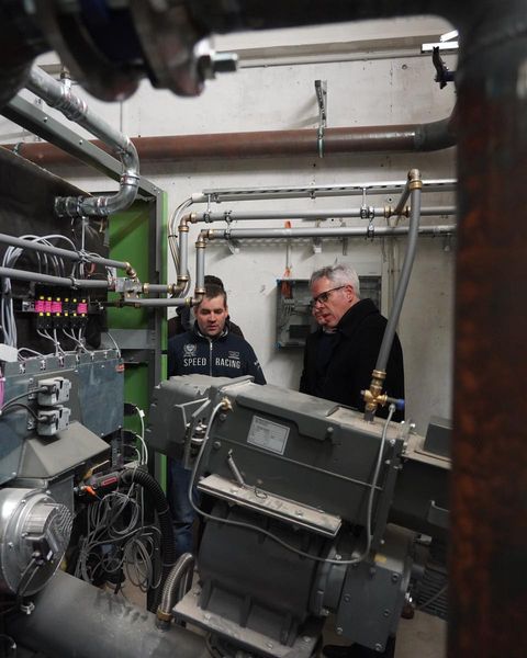 Der Kreis geht einen weiteren Schritt bei der Reduktion der Treibhausgas-Emissionen: Die Mittelpunktschule in Gadernheim wird künftig mit erneuerbarer Energie versorgt! Die Energie kommt nun direkt vom Nachbarn: dem Landwirt Thilo Krichbaum. Heute habe ich die brandneue Hackschnitzelanlage besichtigt. Großartiges Projekt! Hintergrund: Wir hatten uns mit dem Klimaschutzkonzept des Kreises das Ziel gesetzt, Vorbild für die Umsetzung von konkreten Klimaschutzmaßnahmen zu sein. Neben der dezentralen Energiegewinnung durch Photovoltaik-Anlagen stellen wir (als Schulträger) u.a. die Versorgung der Bergsträßer Schulen auf ressourcenschonende Energie um.
