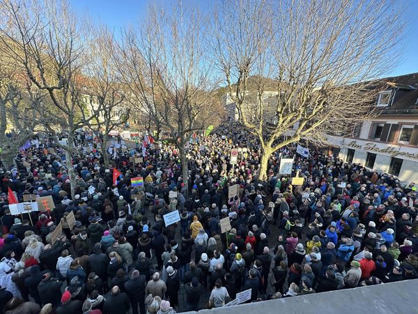 Angemeldet waren ca. 500 Menschen, nach Schätzung der Polizei ca. 4000 Menschen, die heute zu einer Kundgebung vor dem Landratsamt waren, um ein klares Zeichen gegen Rechtsextremismus zu setzen.