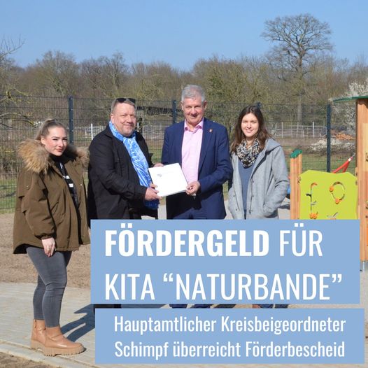 Im August 2022 wurde in Einhausen die Kita „Naturbande“ in Betrieb genommen. Durch die Nähe zum Wald und dem großen Außenbereich bietet sie den Kindern reichlich Möglichkeiten, die Natur zu entdecken. Nun gab es nachträglich noch einmal Geld für die Gemeinde: Der hauptamtliche Kreisbeigeordnete Matthias Schimpf überreichte Einhausens Bürgermeister Helmut Glanzner einen Förderbescheid über 38.360 Euro. Die Mittel stammen aus einer Umverteilung aus dem Landesinvestitionsprogramm „Kinderbetreuung 2020 – 2024“. Zuvor waren für den Neubau der Kita bereits Landesfördermittel in Höhe von 731.184 Euro geflossen. Matthias Schimpf nutzte die Gelegenheit, um allen Erzieherinnen und Erziehern zu danken: „Ihr Job ist in den vergangenen Jahren immer anspruchsvoller und umfassender geworden. Vielen Dank an alle, die ihn zum Wohl der Kinder mit großen Engagement nachgehen. Wir brauchen Sie. Gleichzeitig müssen wir Wege finden, wenn nötig auch unkonventionelle, um dem bundesweiten Fachkräftemangel an Erzieherinnen und Erziehern zu begegnen.“