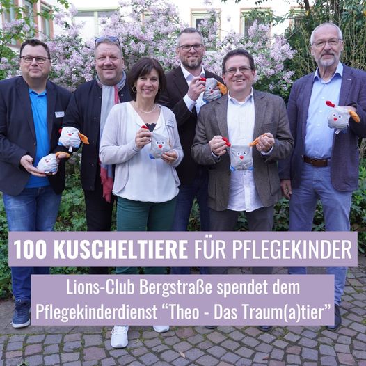 Er ist kuschelig, hat große Ohren und passt in jeden Rucksack: Die Rede ist von Theo, dem Traum(a)tier! Das Kuscheltier wurde im Fachzentrum für Traumapädagogik des Erziehungsbüros Rheinland als Seelentröster entwickelt. Er soll sowohl Kinder, als auch Jugendliche und Erwachsene im Alltag begleiten und in schwierigen Situationen Unterstützung, Halt und Sicherheit bieten. Damit Theo auch im Kreis Bergstraße Gutes tun kann, hat der Lions-Club Bergstraße dem Pflegekinderdienst des Kreises 100 Kuscheltiere gespendet.