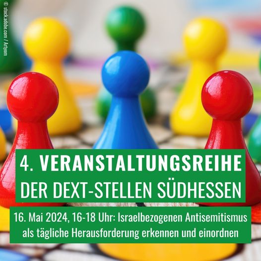 Wie erkennt man israelbezogenen Antisemitismus? Und wie muss man ihn einordnen? Das erklären Jana-Marie Müller und Paul Henninger vom Verein Spiegelbild – Politische Bildung Wiesbaden e.V. am 16.05.2024 ab 16 Uhr im Rahmen der Veranstaltungsreihe „Demokratieförderung in Schule und Jugendarbeit“ der DEXT-Fachstellen Südhessen.