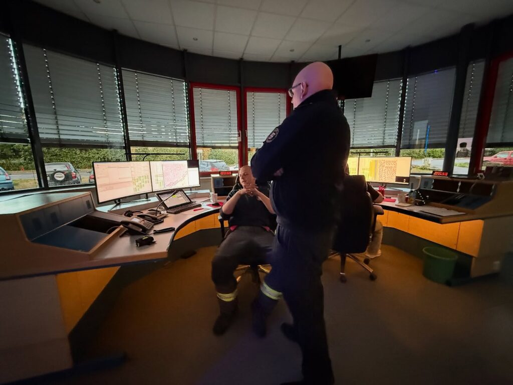 Gerade bei der Feuerwehr Viernheim. Aufgrund des Gewitters gibt es hier aktuell circa 60 Einsatzlagen, die Feuerwehr ist mit circa 30 Kräften im Einsatz, um beispielsweise Wasser aus Kellern zu pumpen.